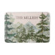 Watercolor Pine Forest and Mountain Rustic Bath Mat