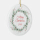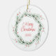 Watercolor Pine Needles and Berries Wreath Ceramic Ornament