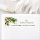 This Christmas holiday return address label features popular watercolor painted pine needles accented with red berries on a white background.