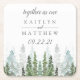 Watercolor Pine Tree Forest Wedding Save The Date Square Paper Coaster