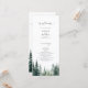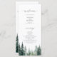 Modern simple elegant typography trendy sage green pine tree forest destination wedding ceremony and party program template featuring a chic calligraphy script and watercolor forest landscape. ++++++++++++ Easy to personalize with your custom text on both sides!