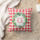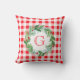 Watercolor Pine Wreath MONOGRAM Red Check Throw Pillow