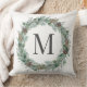 Watercolor Pine Wreath Pinecone Monogram Winter Throw Pillow