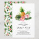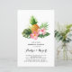 Fun and festive tropical wedding shower invitation featuring watercolor illustrations of pink hibiscus, pineapple and foliage with matching a tropical pattern for the back. This summer invitation is fully editable for any tropical and Hawaiian themed weddings. Personalize by adding your details.