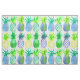 A colorful fabric decorated with pineapples hand painted with watercolor in shades of blue, green, purple and yellow with a watercolor spatter background. Great for home decor and crafts!