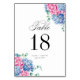 Watercolor Pink and Blue Hydrangeas Wedding Table Number