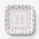 Watercolor Pink and Green Mahjong Tiles Monogram Paper Plates