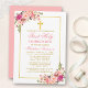 Watercolor Pink Blush Floral Gold First Communion Invitation