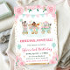 Watercolor Pink Circus Animals Birthday Party Invitation