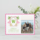 Watercolor Pink Flamingo Christmas Monogram Crest Holiday Card