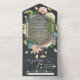 Elegant watercolor white and green hydrangeas, pink and cream roses, daisies and greenery on a dark background, these tri-fold wedding invitations feature your details in chic lettering in sections and a detachable RSVP card for guests to complete and return. **REMEMBER to put a postcard stamp on the RSVP card section and a regular stamp on the mail to address section!