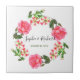 Watercolor Pink Flowers Circle Wreath Design Ceramic Tile