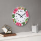 Watercolor Pink Flowers Wreath Circle Large Clock