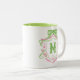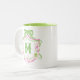 Watercolor Pink & Green Bow Mahjong Monogram Crest Two-Tone Coffee Mug