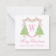 Watercolor Pink & Green Christmas Monogram Crest Note Card