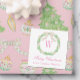 Watercolor Pink & Green Christmas Monogram Wreath Note Card