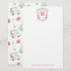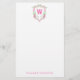 Watercolor Pink & Green Golf Cart Monogram Crest Stationery