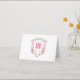 Watercolor Pink & Green Golf Cart Monogram Crest Thank You Card