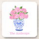 Watercolor Pink Hydrangea Chinoiserie Name Beverage Coaster