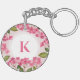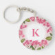 Watercolor Pink Hydrangea Lacecaps Monogram Keychain