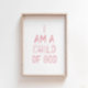 Watercolor pink I am a Child of God print