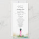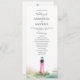 These beach wedding ceremony programs feature a pink watercolor lighthouse. Use the template fields to add your order of service. The card reverses to space to add your wedding party details. Order tea length printed cards or printable wedding programs. A charming choice for seaside and destination weddings. To see more unique designs like this visit Do Tell A Belle on Zazzle at www.zazzle.com/dotellabelle Unique watercolor art and design by Victoria Grigaliunas.