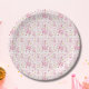 This watercolor llama paper plates, featuring pink and gold hearts and "XOXO" accents.
