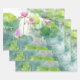 Watercolor Pink Lotus Flowers with Leaves Wrapping Paper Sheets