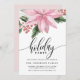 Watercolor Pink Poinsettia and Holly Holiday Party Invitation