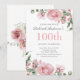 Watercolor PInk Rose 100th Birthday Party Invitation