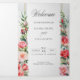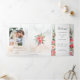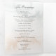 Lovely columns of elegant watercolor blush pink roses and green foliage on a subtle pastel watercolor background and center label with gold borders. Features calligraphy text graphics in custom script font (or delete and customize in the design editor) with editable text fields for your ceremony details and wedding participants.