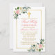 Watercolor Pink Roses White Floral First Communion Invitation