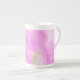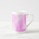 A soft and feminine bone china mug with a watercolor painting of pink tulips.