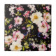 Watercolor Pink Yellow Roses Black Background Ceramic Tile