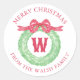 Watercolor Polka Dot Bow Monogram Wreath Classic Round Sticker