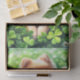 Cute decoupage tissue paper featuring an adorable orange Pomeranian dog laying a field of clover with a few shamrocks. A cute St. Patrick's Day gift for Pomeranian owners and pom lovers.