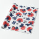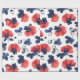 A beautiful watercolor pattern wrapping paper featuring red, blue, and white poppy flowers delicately arranged on a clean white background. The hand-painted design evokes a soft, vintage charm with a fresh seasonal feel, perfect for spring, summer, and patriotic themes. Ideal for nature lovers, floral enthusiasts, and timeless gifting occasions.