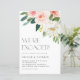 Invite guests to your event with this customizable engagement party invitation. It features watercolor floral bouquet of blush, pink and white roses, dahlias and peonies. Personalize by adding your details. This floral engagement party invitation is perfect for spring and garden weddings.