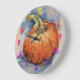 A lovely watercolour Pumpkin in shades of orange with a blue background.