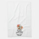 This kitchen towel is perfect for anyone who looks forward to fall and all things pumpkin spice. The design features a watercolor image of a pumpkin spice drink with an assortment of fall goodies with the saying "happy fall y'all" below in a black hand lettering with a laurel branch at the bottom..