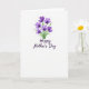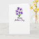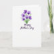 This card features five purple blossoms grouped in the center on a white background, their overlapping petals painted with a light watercolor look that feels gentle and affectionate ❤️. Each bloom has a deeper purple center, with thin, stamen-like lines reaching outward like a quiet embrace between close friends. Slender green stems and a few curving leaves rise from beneath the flowers, adding a natural, caring touch 🌼. The colors stay mostly in soft purples and greens, letting the bouquet feel calm and tender rather than busy. Centered below the illustration, the words “Happy Mother’s Day” appear in dark violet lettering that matches the flower centers. The text sits with plenty of open space around it, so the message and the bouquet both stand out clearly. Subtle shading in the petals creates a slightly translucent glow, as if the flowers are leaning toward one another. The five blossoms form a loose arc above the dark violet greeting, with the leaves fanning outward at the base.