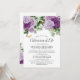 A celebration of life funeral invitation, designed featuring chic purple watercolor florals with eucalyptus and other botanical foliage on a classic white background and an elegant memorial announcement template that can easily be personalized.