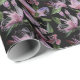 Watercolor purple lilac flowers pattern black wrapping paper