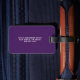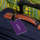 Feminine and stylish luggage tag featuring a whimsical watercolor illustration of purple roses with pink and yellow floral accents. This design is available in other products.
