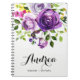 Feminine and stylish notebook featuring whimsical watercolor illustrations purple roses with pink and yellow floral accents. This design is available in other products in my store.