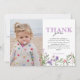 This elegant first birthday collection has watercolor wildflowers and purple text. The back is a purple and matching wildflower pattern. The added butterflies give it an extra girly touch.