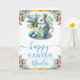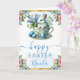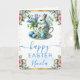 Share warm spring wishes with this charming Easter card featuring a sweet bunny sitting inside a floral teacup surrounded by blue patterned Easter eggs and delicate watercolor flowers. Soft pink and blue florals, butterflies, and greenery frame the artwork, while gold accents add a gentle festive sparkle. The pastel palette and elegant spring motifs create a bright, uplifting design perfect for sending heartfelt Easter greetings to friends and family. Personalizable text allows you to add a name or message for a one‑of‑a‑kind Easter keepsake.