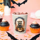 Halloween design with a cute illustration featuring a watercolor raccoon and a pumpkin.