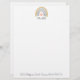 Cute personalized kid's watercolor boho rainbow stationery featuring a pink mustard and blue rainbow with pink heart in the middle and name. Add your address to the bottom of the paper.