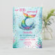 Watercolor rainbow mermaid tail 6th birthday girl invitation